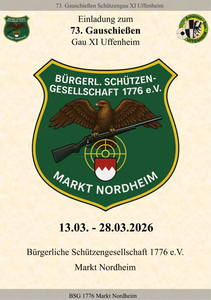 Die Bürgerliche Schützengesellschaft 1776 Markt Nordheim lädt zum diesjährigen Gauschießen herzlich ein.